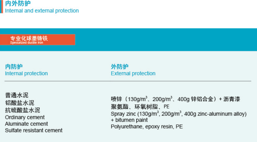 每支球虽铸铁管都要进行严格的在线检测,检测项目包括, 铁水成分、金相,抗拉强度、延伸率、硬度、产品尺寸、产品 外观、水压、水泥内衬厚度、喷锌厚度、喷漆厚度.确保每个 产品都符合标准。